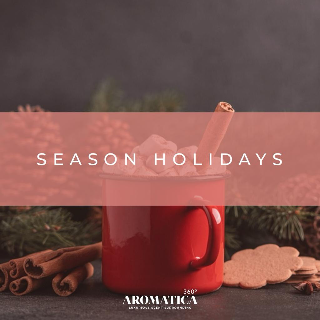 Introducing "Season Holidays," a fragrance of festive cheer. Spicy cinnamon and green apple open, followed by sweet apple and creamy coconut. The journey ends with comforting coconut and vanilla, enveloping you in holiday bliss.